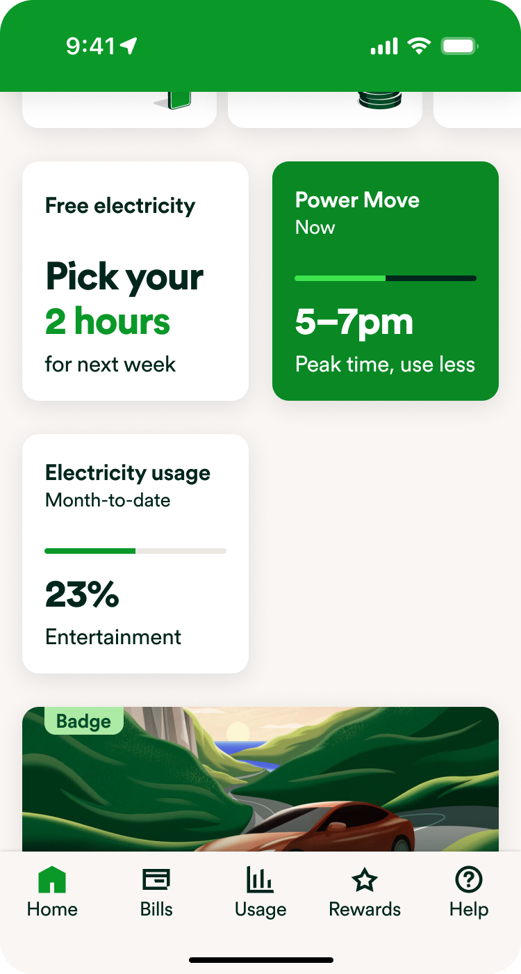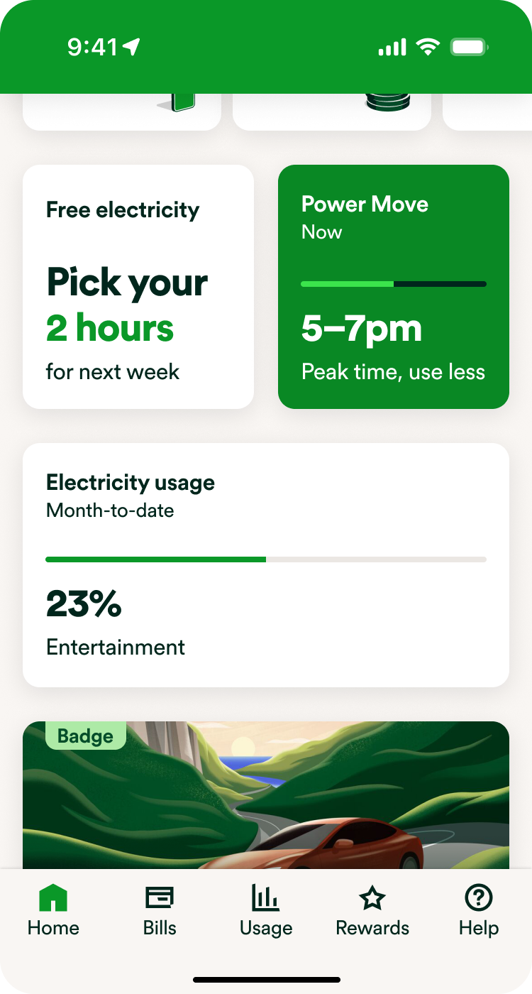Hero a key product or service, with a catchy caption. Glanceable information. Entry point to more granular detail.